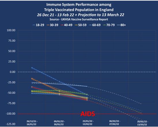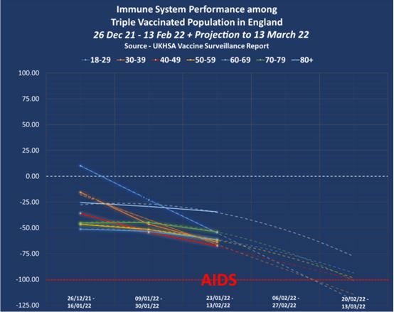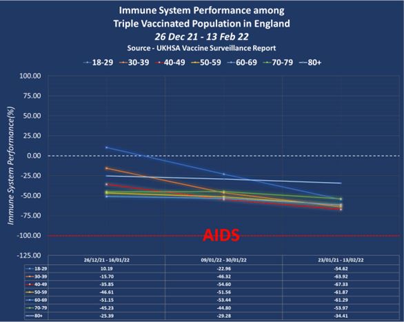 Official data suggests Triple Vaccinated Brits are just weeks away from developing Acquired Immune Deficiency Syndrome (AIDS) By The Exposé on February 20, 2022 • ( 25 Comments )