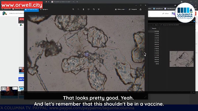 Orwell Cityは今日、急いでこのスクープを入手し、いつものように番組の重要な部分を抜粋してお届けします。その中では、光学顕微鏡写真を見ることができ、検出されたナノ物質が科学文献に記載されている酸化グラフェンと類似していることに注目することができます。