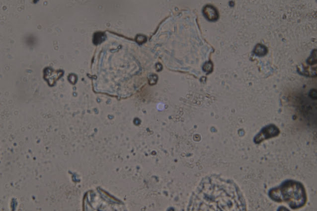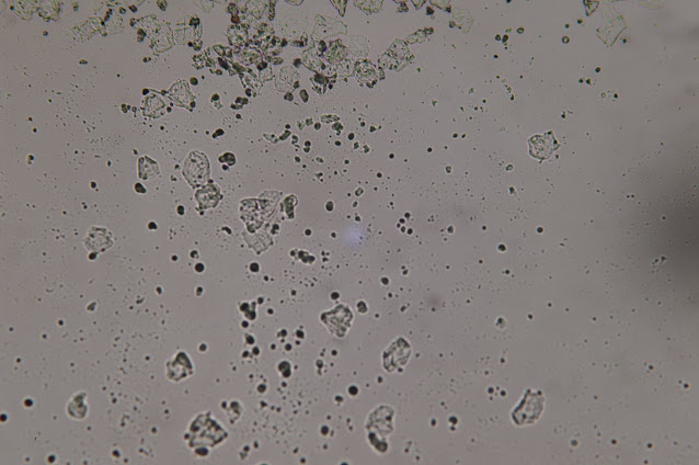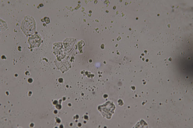 これは、インフルエンザに対する、Vaxigripワクチンの小瓶からのものであることを思い出してください。インフルエンザワクチンの話です。ここでは、もう少し拡大してみました。光学顕微鏡のコンデンサーによって、明るさが異なります。