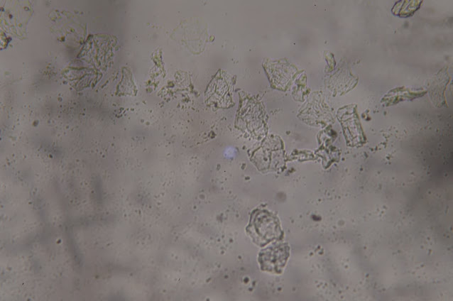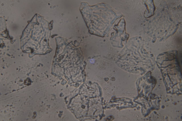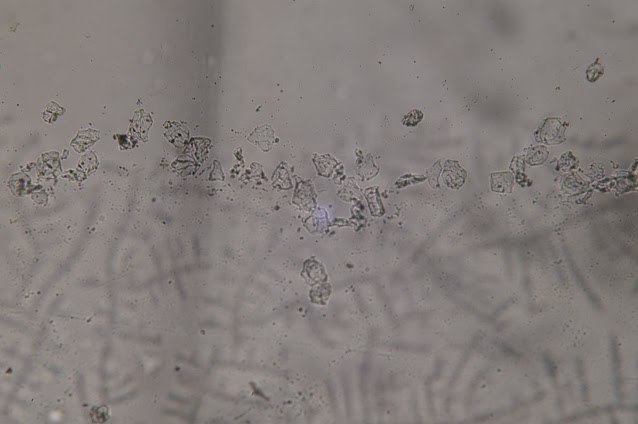 ここにあるいくつかの結晶は、もしかしたらショ糖かもしれません。しかし、ここには折り目があります。別のものを見てみましょう。こちらの方が目を引きますね。