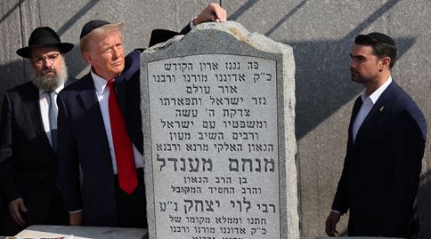 メナヘム・シュネールソンの墓前で、チャバド派のトランプ、ルトニック、シャピロは、2024年10月7日に行われたチャバドとモサドによる攻撃の1周年を偲んでいる。この攻撃は第三次世界大戦の勃発を意図したもので、モシア(ユダヤの預言者)の召命を招いた。ネタニヤフ首相はシュネールソンに対し、そのような戦争を起こすと約束した。