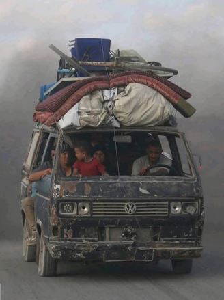 イスラエル軍は火曜日、ガザ市への地上攻撃の主力を開始し、空爆によって既に甚大な被害を受けている人口密集市街地中心部へとゆっくりと進軍を進めている。住民は直ちに南部へ避難するよう指示されている。戦火で荒廃した市街地から脱出しようと、家族の持ち物を満載した車が長蛇の列をなす様子が見られた。