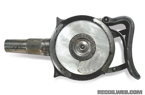 こちらがオリジナルのパームピストルである・・・握り締められるトリガー機構から「スクイーズガン」とも呼ばれている・・・下の写真に見られる。