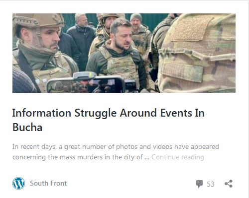 モスクワはキエフを複数のフェイクで責めている。例えば、ロシア側は、路上に死体が転がっているブチャの写真の真偽を疑っている。