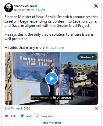 Israel Officially Launches ‘Greater Israel’ Land Grab: Borders to Expand Deep into Lebanon, Syria, and Gaza April 9, 2026 Baxter Dmitry News, World 6 Comments