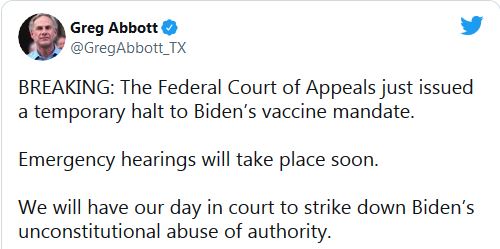 テキサス州知事のグレッグ・アボットは、この決定を祝して、「緊急審問はすぐに行われるだろう」とツイートしました。エポックタイムズはこう付け加えています: